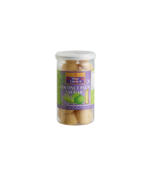 Thai-Choice Coconut Palm Sugar is made from the sweet sap of the coconut palm, boiled and reduced into a thick syrup, then dried in molds. It has a rich caramel or toffee flavor and is perfect for both savory sauces and curries, as well as desserts. Popular recipes using palm sugar include Pad Thai, Massaman and green curries, Som Tum (green papaya salad), satay sauce, and coconut milk custard.