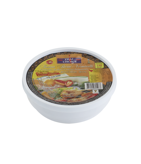 Thai-Choice Bean Vermicelli is a healthy product, easily recognized by its unique translucent appearance when cooked. It has a soft, slippery texture that perfectly absorbs sauces. With no fat, no sugar, no cholesterol, low sodium, and low calories, it is an ideal choice for those seeking a healthy diet.