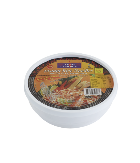 Made from Thai white rice flour, Thai-Choice Instant Rice Noodles Bowls are a healthier alternative to wheat noodles, as they are gluten-free, cholesterol-free, and very low in fat. Rice flour is easily digestible and non-allergenic. Thai-Choice offers both rice vermicelli and flat rice noodles in a variety of flavors, available in cup and bowl-style packaging.