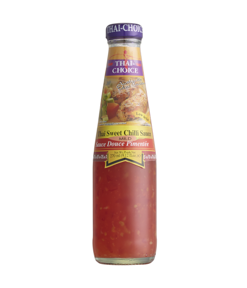 Thai-Choice Sweet Chilli Sauce Mild is a favorite dipping sauce for chicken, seafood, spring rolls, and other fried dumplings. A must-have in Thai cooking, it complements baked, roasted, grilled, BBQ, and fried meats, as well as fish, calamari, and shrimp. It is also perfect as a glaze—brush the sauce on roast or grilled chicken near the end of cooking to form a beautiful glaze, but avoid overcooking. With just a bottle, Thai-Choice Sweet Chilli Sauce Mild adds a gentle, flavorful dimension to your meals with ease.