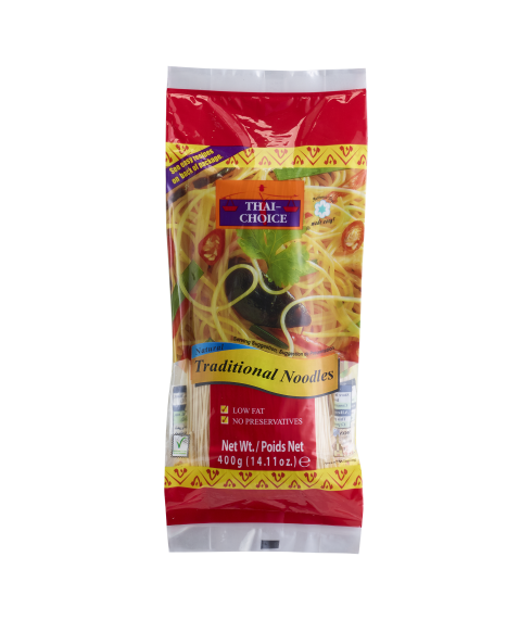 Thai-Choice Traditional Noodles are versatile and easy to prepare, perfect for stir-fries or soups. These noodles provide a convenient source of energy, making them a practical and wholesome choice for everyday meals.