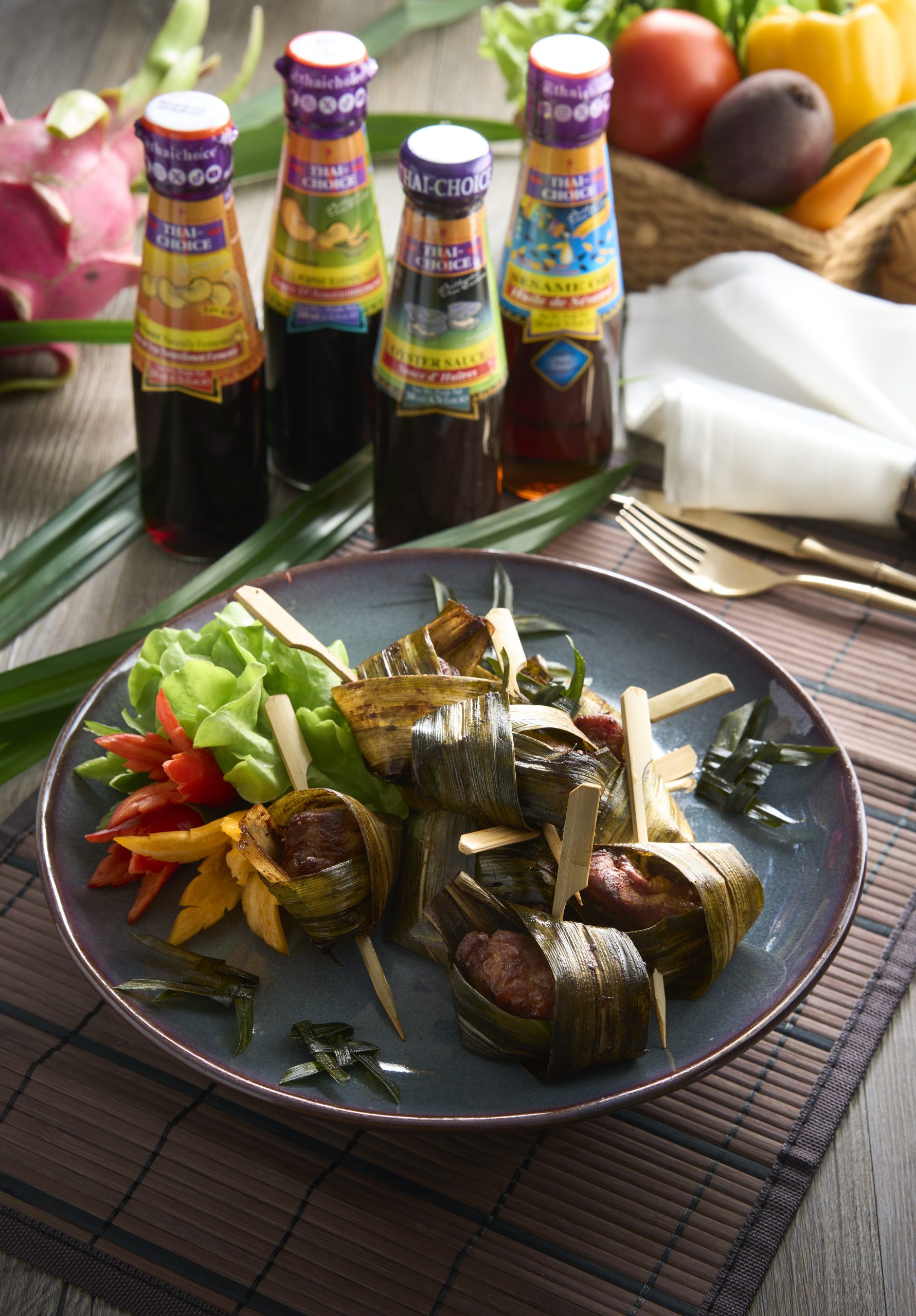- In a bowl combine Thai-Choice Sesame Oil , Thai-Choice Soy Sauce, Naturally Fermented, sugar, ground pepper, Thai-Choice Oyster Sauce and Thai-Choice Seasoning Sauce.