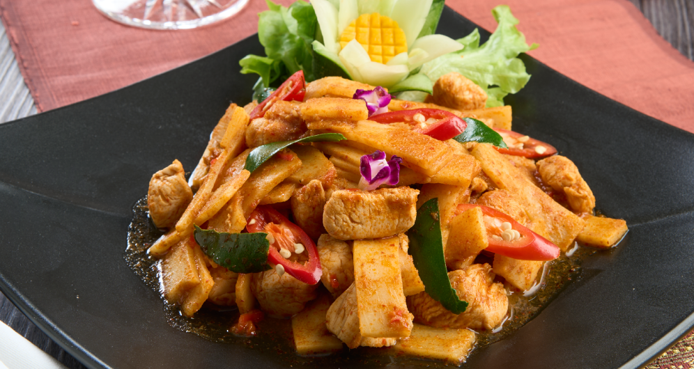 Stir-Fried Chicken with Bamboo Shoots with red curry paste