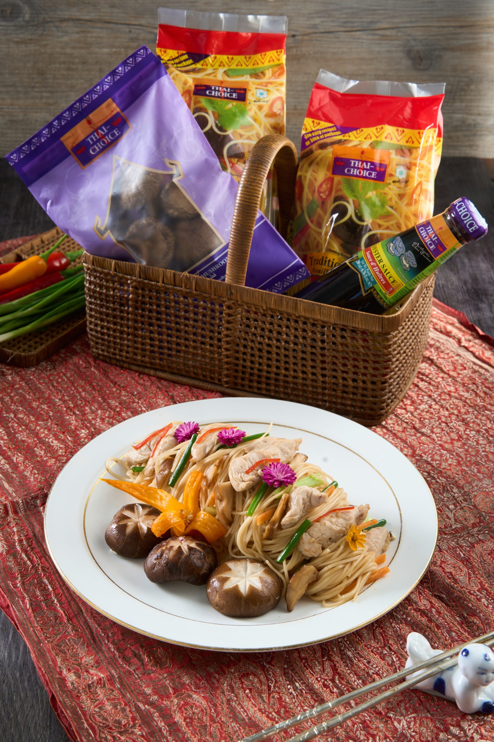 - Soak Thai-Choice Traditional Noodles in hot water for 5 minutes then immerse in cold water. Drain noodles.