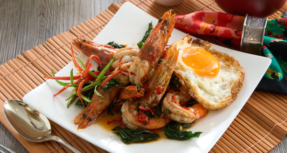 - Add prawns, add Thai-Choice Basil Stir Fry Sauce. Stir well for 3 minutes or until done.